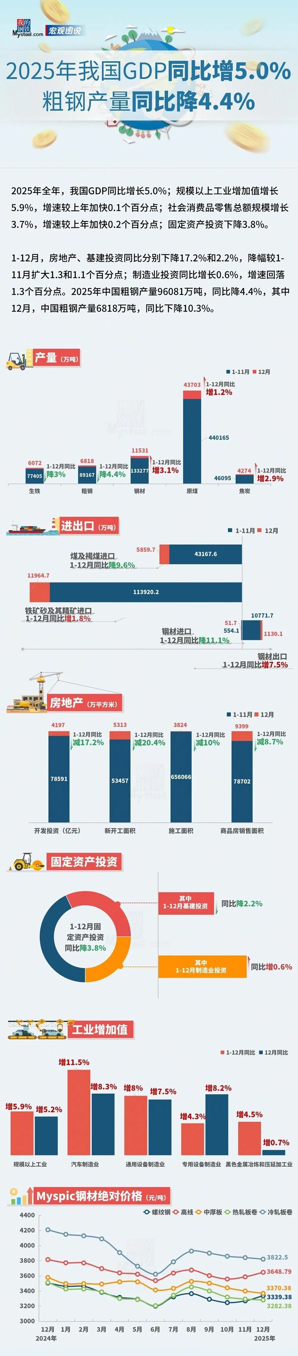 圖說:2025年我國GDP增長5.0%,粗鋼產(chǎn)量下降4.4%