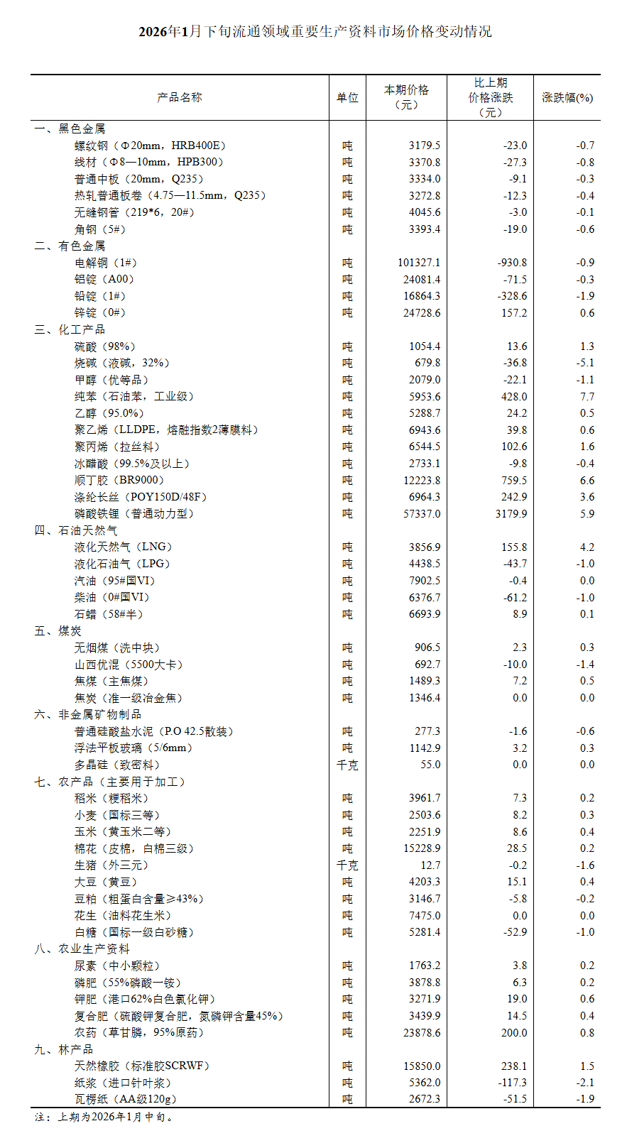 據(jù)對(duì)全國流通領(lǐng)域9大類50種重要生產(chǎn)資料市場價(jià)格的監(jiān)測顯示,2026年1月下旬與1月中旬相比,25種產(chǎn)品價(jià)格上漲,21種下降,4種持平。