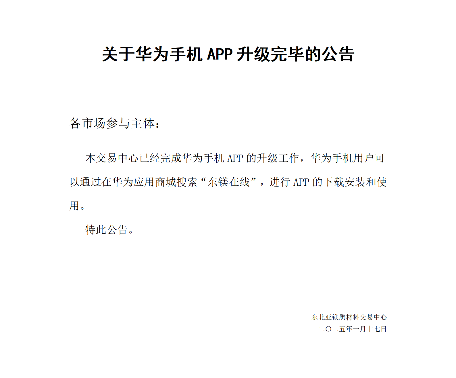 關(guān)于華為手機app升級完畢的公告